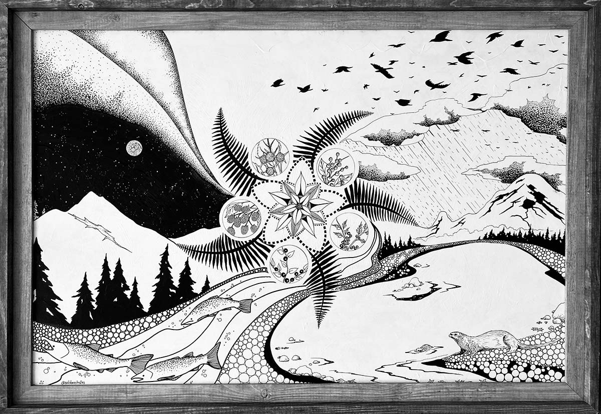 Nalisha Estrellas Rangel: NaturalezaCompleted: 2022 - 24" x 36" - Black Pen on Canvas
